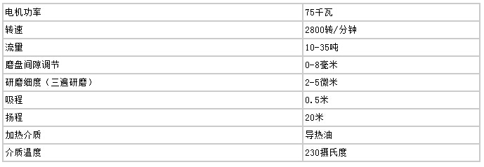 高速剪切均化磨技術(shù)參數(shù)(20T/小時(shí))
